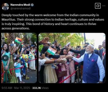 PM Modi also took to social media and shared on X “Deeply touched by the warm welcome from the Indian community in Mauritius. Their strong connection to Indian heritage, culture and values is truly inspiring. This bond of history and heart continues to thrive across generations.”