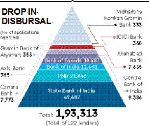 The reasons range from the projects being unviable, not in service area of the bank or past defaults by the promoter. In 2016-17, the share of loans disbursed was better at 11.39%, while in 2015-16 it was even higher at 14%.