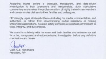 FIP urged the media, officials, and the public to avoid spreading one-sided stories or making assumptions. “Aviation safety demands a steadfast commitment to facts, integrity, and due process,” the statement noted.