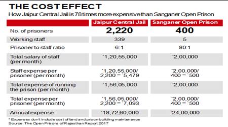 Besides humanitarian concerns, semi-open and open prisons also truncate the financial burden on the exchequer. A comparison in the 2017 report prepared by Chakraburtty reveals Rajasthan’s Jaipur Central Jail to be 78 times more expensive per annum than Sanganer Open Prison in the state. Analysing the details, one finds the latter to cost only Rs 24 lakh per annum as against the Rs 18-crore burden created on the treasury by the central jail in Jaipur. “Why do we need such expensive structures? The country is grappling with so many sectors. The money spent on closed prisons can be used elsewhere… to fund primary education, healthcare, etc,” says Chakraburtty in her report.