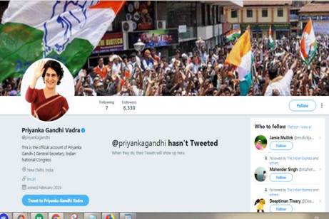 Just minutes before her roadshow in Lucknow, the Congress general secretary has joined Twitter. She, her brother and Congress chief Rahul Gandhi and Jyotiraditya Scindia will hold a roadshow today for 21 km march.