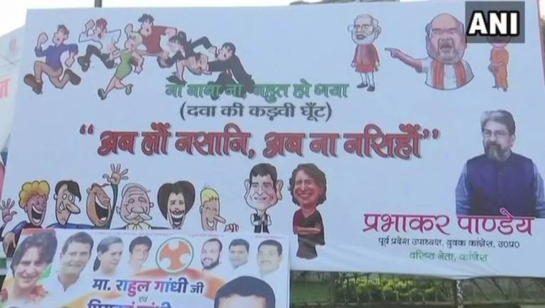 A number of posters in Lucknow show Congress General Secretary Priyanka Gandhi as Goddes Durga ahead of her road shows in the Uttar Pradesh capital today. The roadshow is scheduled to begin at 12 noon.
