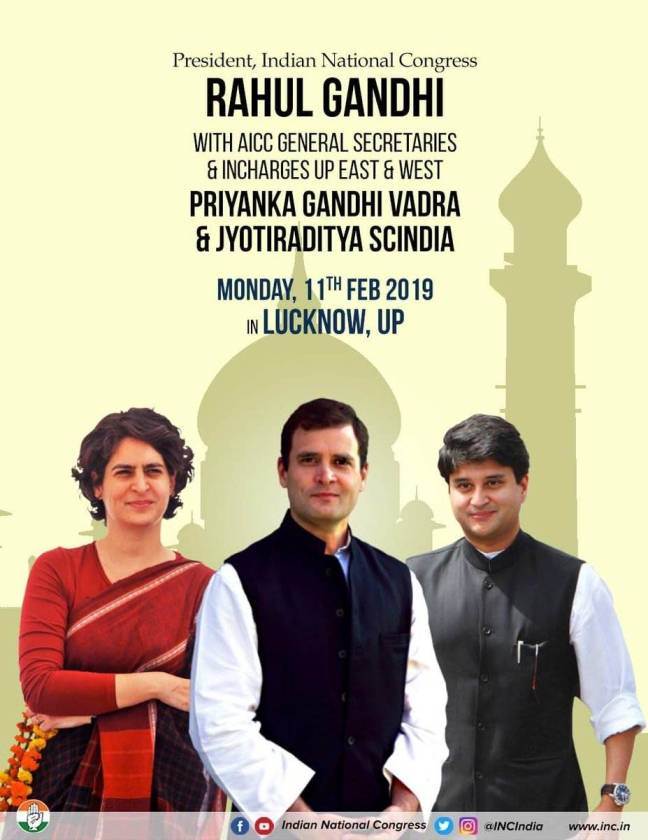 Hopes are riding high on Priyanka Gandhi and Jyotiraditya Scindia whom the party workers and supporters believe will turn the party’s political fortunes in the state, which as 80 parliamentary seats. In 2014, the BJP had wrested 71 seats. Uttar Pradesh, which has the largest Lok Sabha seats in the country plays an important role in formation of governments at the Centre.