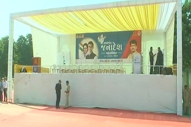 1:41 pm: Visuals of preparation from Ahmedabad where Congress VP Rahul Gandhi will take part in OBC ‘Navsarjan Janadesh Mahasammelan’ today