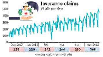NIAC’s actions follow spiraling of insurance claims, from Rs 1.6 crore per day in December 2017 when the second phase of the scheme began, to Rs 3.7 crore in May 2018 (see graphic). Over this period, NIAC has been regularly rejecting claims from those hospitals where it felt the claims were fraudulent.
