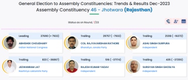 According to the latest update by the ECI, Abhishek Chaudhary from the Congress party is leading from Jhotwara.