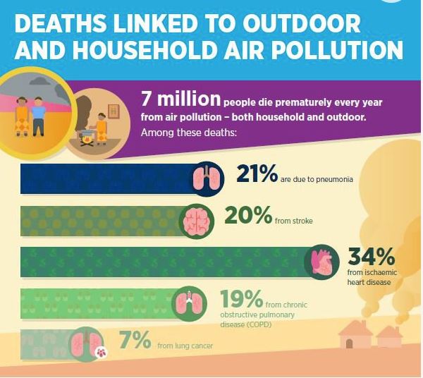 According to the data released by World Health Organisation (WHO) in May 2018, more than 7 million people die every year due to air pollution alone. In 2016, ambient (outdoor) air pollution alone caused 4.2 million deaths, on the other hand, household pollution took 3.8 million lives across the globe.