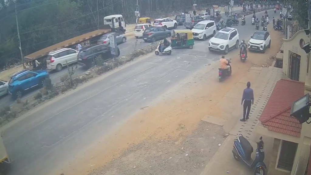 A scooterist in Bengaluru attacked a car carrying a couple and their young daughter after failing to overtake the vehicle. The incident was caught on CCTV camera. The altercation led to a shattered car window and injury to the child. This incident is part of a troubling trend, coinciding with a surge in fatal accidents and a dramatic increase in the city’s vehicle count over the past decade.