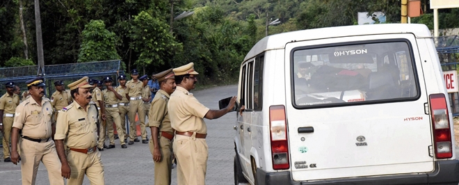 Police have barricaded all the roads leading from Nilackal to the base camp and declared out of bounds till Monday morning. Police officials are checking each and every vehicle that passes in and around the temple town. The administration has imposed Section 144 of CrPC at Pamba, Nilakkal, Elavungal, and Sannidhanam to ban mass gathering.