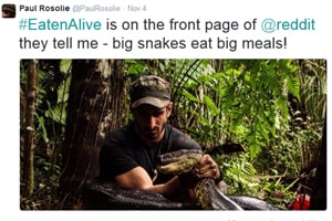 On his Twitter feed, Rosolie told his followers: “If u know me – I would never hurt a living thing. But you’ll have to watch #EatenAlive to find out how it goes down!”