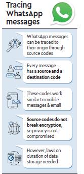 While messages on WhatsApp are end-to-end encrypted and can’t be read by WhatsApp, technology experts maintain that the company can trace the origin of the messages through source code.