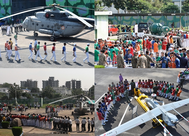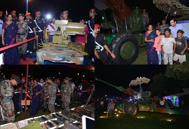 Modern defence equipment such as tanks, artillery and radar are being showcased at all 53 locations in 51 cities. The weapons that are being displayed to general public include rocket launcher Pinaka, multi-barrel rocket launch system, Arjun tank, strike vehicles and Rudra aircraft, among many others.