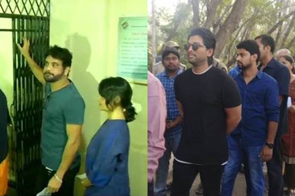 Actor Allu Arjun stands in a queue to cast his vote at booth no. 152 in Jubilee Hills, Hyderabad. Actor Akkineni Nagarjuna and his wife & actor Amala Akkineni stand in a queue to cast their votes at booth no. 151 in Jubilee Hills, Hyderabad.