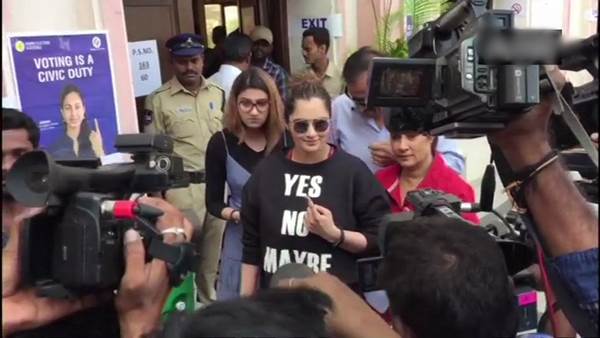 Ace tennis start Sania Mirza has cast her vote at Film Nagar Cultural Center in Hyderabad. Voter turnout recorded till 11.00 am is 23.4 per cent.