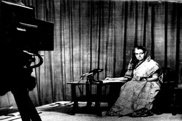 Then PM Indira Gandhi addressing the nation from the Doordarshan studio during the Emergency (June 25, 1975 to March 21, 1977). During that time, Gandhi passed the 42nd Amendment Act of 1976 that changed the description of India, amended the Preamble, added Fundamental Duties to the Constitution, among others. The 44th Amendment Act of 1978, passed during the Morarji Desai government, reversed some changes made by the 42nd Amendment Act. | Photo credit: Express Archives