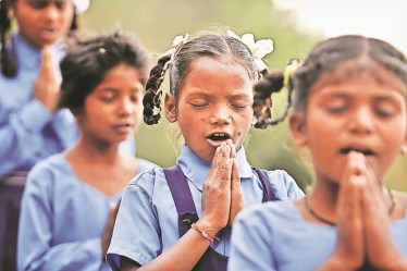 Underprivileged children at then UP CM Akhilesh Yadav’s official residence for felicitation in Lucknow on the occasion of Malala Day (July 12, 2016). The children belonged to 16 districts of the state who got admission in prestigious schools under the Right to Education Act, 2009. Through the 86th Amendment Act of 2002, Article 21-A was introduced making elementary education a fundamental right. | Photo credit: Express photo by Vishal Srivastav