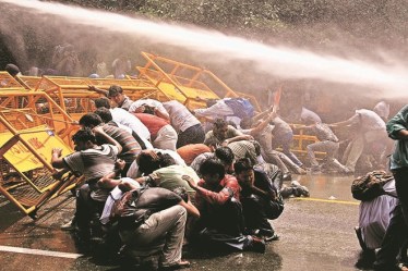 Doctors’ associations and medical students protesting against the Centre’s decision to implement the Other Backward Classes (OBC) quota at the postgraduate level, in New Delhi on August 24, 2006. The Constitution (93rd Amendment) Act of 2005 was introduced by the first Manmohan Singh government, granting 27% reservation for OBCs in all Central government institutions. | Photo credit: Express photo by Partha Paul
