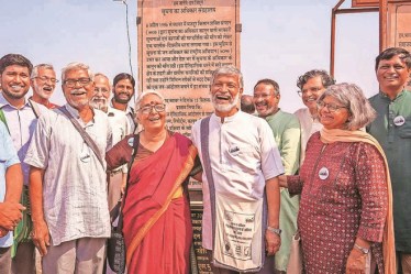 Aruna Roy, a social activist and president of the National Federation of Indian Women, with former Supreme Court judge Madan Lokur, social activist Nikhil Dey and others during the foundation stone-laying ceremony of the Right to Information (RTI) Museum on October 20, 2024, in Beawar, Rajasthan. Beawar is referred to as ‘RTI ki Janmabhoomi’ because it pioneered the movement by demonstrating a massive protest in April 1996. The RTI Act was enacted in 2005 (on the basis of Article 19(1) of the Constitution). | Photo credit: PTI