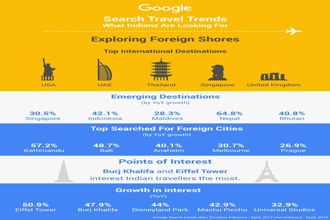 With summer vacations around the corner, Indians have started to explore options to make the best use of their holidays. According to the latest data revealed by Google India of top travel search trends for the months of February to April this year, overall travel queries grew by 53% on Year on Year (YoY) basis. These queries included planning, transport, accommodation, vacation packages and travel documentation.