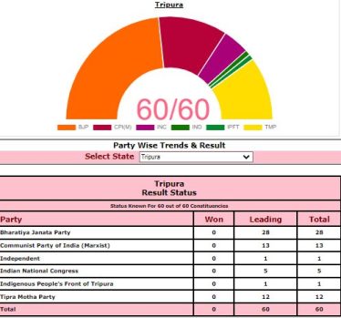 Tripura Election Results 2023: BJP charges ahead as per numbers on TV channels at 12:23 PM –