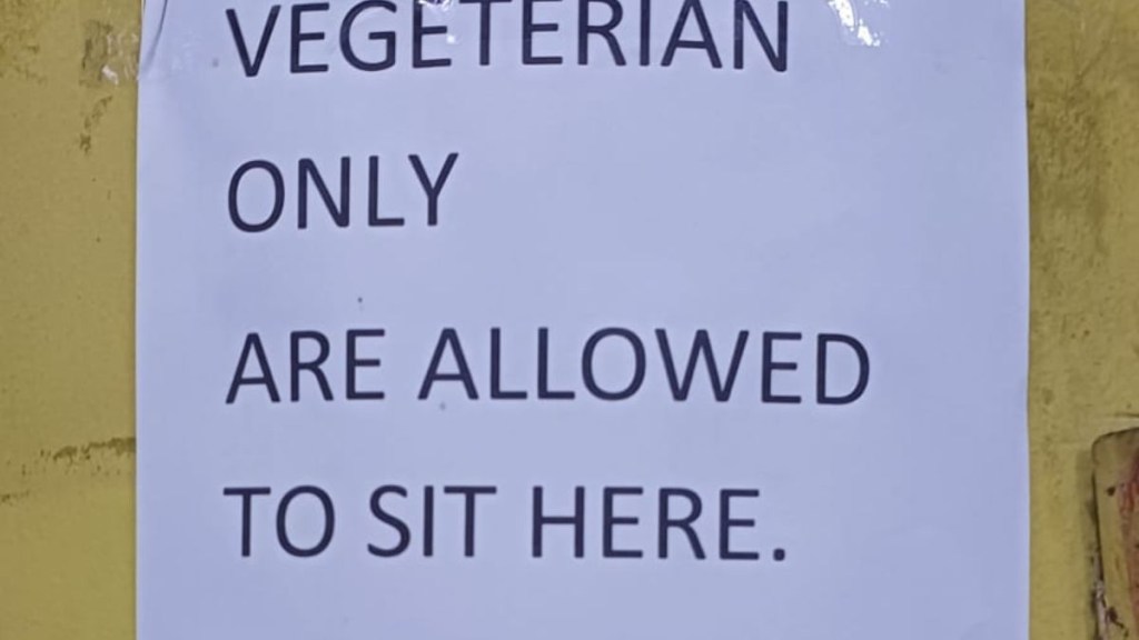 The hostel general secretary confirmed receiving reports of forceful designation of places as “Jain sitting space” and a refrain for the individuals who bring non-vegetarian food from sitting in those areas.
