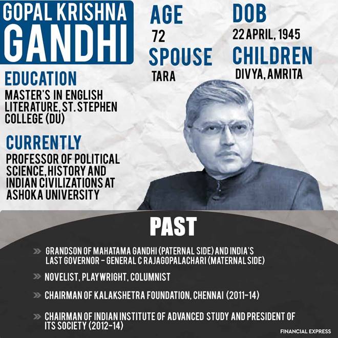 03: 45 PM: A brief bio of Opposition Vice Presidential candidate Gopalkrishna Gandhi.
