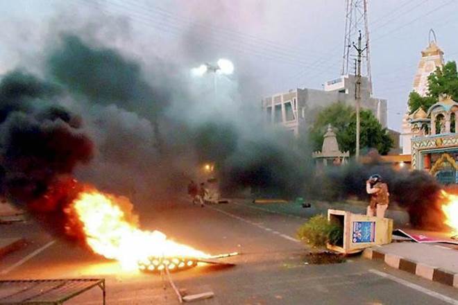 The Halvad police identified one of the victims as Rana Shiyar (45), a resident of nearby Golasan village. Shiyar was declared dead by a doctor around 5:30 pm, police said. Reports said that rioters set ablaze some cars and around two dozen motorbikes parked in Shatkinagar village. The SP confirmed that clashes were based on the acrimony created between two caste groups since alleged murder of Zala on July 7. “Caste member of Zala were on their way to Dhrangadhra to attend his condolence meeting when people from the other caste group started pelting stones on their vehicles. This led to violence. However, the situation is under control now. Police has been deployed and rioters have been dispersed,” the SP was quoted as saying by the Indian Express.