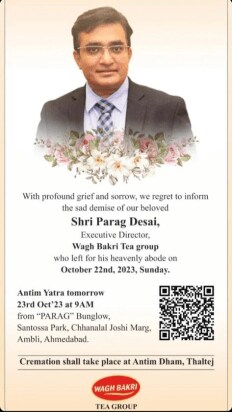 Wagh Bakri ED Parag Desai: Wagh Bakri Tea Group executive director Parag Desai passed away aged 49 at a private hospital in Gujarat’s Ahmedabad, the company announced on social media.