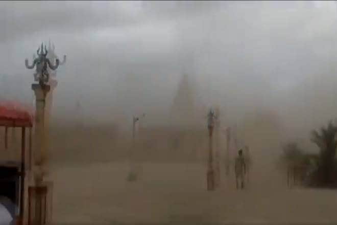 Cyclone Vayu: Strong winds and dust hit the Somnath temple in Gir Somnath district today ahead of the landfall of Cyclone Vayu. The cyclonic storm, which is expected to hit Gujarat tomorrow, advanced towards Saurashtra and Kutch regions on Wednesday. The authorities have so far shifted over 1.60 lakh people from low-lying areas of Saurashtra and Kutch regions to safer places. They have also suspended the operations at ports and airports as a precautionary measure.