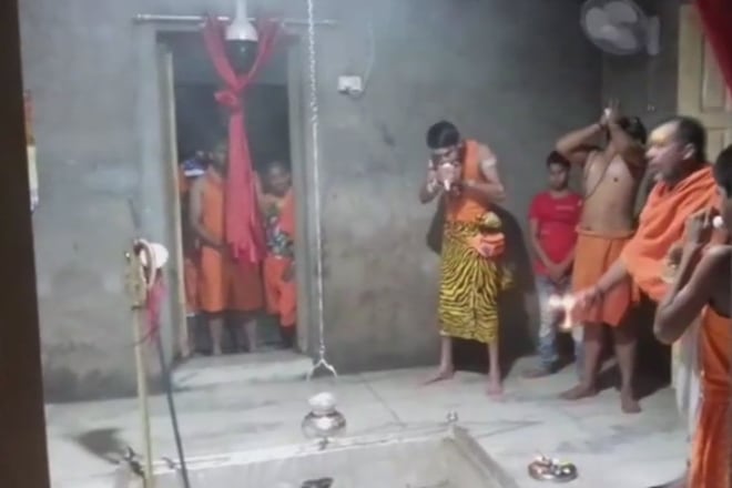 Clad in a costume akin to Lord Shiva’s, RJD leader and former Bihar Health minister Tej Pratap Yadav today visited a temple in Patna where he offered prayers to the supreme deity. A video tweeted by news agency ANI shows him blowing the conch inside the sanctum sanctorum of the temple and a pujari standing next to him and performing aarti. The RJD leader who is embarking on a visit to the Babadham in Deoghar with his supporters, arrived at the temple early morning in the capital to seek blessings of Lord Shiva. The leader will first visit Saultanganj to collect the water of the river Ganga and then head towards Deoghar. The distance between Sultanganj and Deoghar is 120 km. His supporters said that Tej Pratap will cover the 120 km distance on foot to reach Babadham where he will offer the water to Lord Shiva.