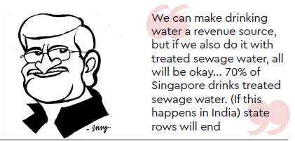 Before answering your question, let me tell you one more thing. Seventy per cent of Singapore drinks treated sewage water. (If this happens in India) wouldn’t all the fights between Karnataka, Tamil Nadu, Rajasthan, Haryana and Punjab end? That is why we have undertaken a programme to treat and reuse all sewage water in villages, either in agriculture or at least for groundwater recharge.