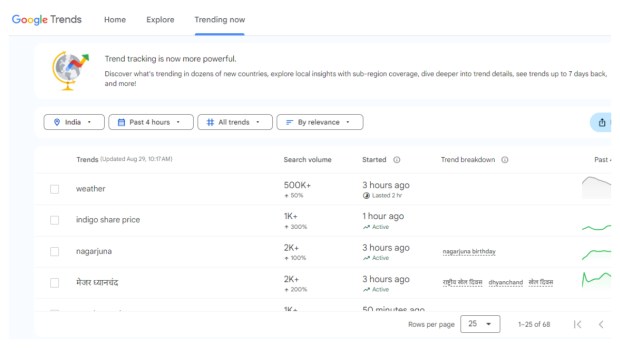 The term ‘Weather’ has surged to the top of Google Trends as rainfall sweept across parts of India, bringing relief to many cities and districts. Amidst a summer marked by intense heat and prolonged drought, the monsoon showers have provided a much-needed respite, prompting a spike in public interest. As the monsoon season progresses, people are eagerly tracking weather updates to stay informed about changing conditions and to plan their activities accordingly. This heightened search interest underscores the significant impact of weather patterns on daily life.