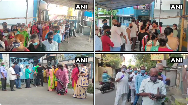 West Bengal Election Live: Voters queue up outside Hiralal Mazumder Memorial College for Women - designated as a polling booth - in Dakshineswar, Kolkata