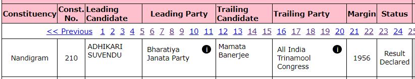 11.30 pm: Election Commission website officially names Suvendu Adhikari as the winner from Nandigram.