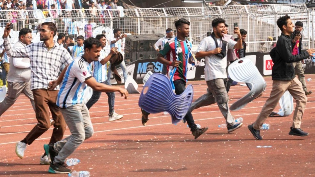 Chaos broke out after the audience started throwing plastic bottles and vandalised the stadium chairs. They complained that despite buying expensive tickets for the event, they could not see Messi either on the field or on the big ground screens.