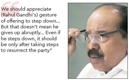 Rahul Gandhi took over as president of the Congress only in 2017. He hardly got two years. He led the party to success in Karnataka, Rajasthan, Chhattisgarh and Madhya Pradesh. This election he failed. I don’t think it (the failure) can be straightaway attributed to only one leader. It has to be shared by everybody. Some investigation or research work has to be done. But that has to be done on merit, otherwise we will end up taking an abrupt decision. Of course, we should appreciate his gesture of offering to step down after taking moral responsibility. But that doesn’t mean that he has to suddenly or abruptly give up. We have two-three Assembly elections coming up and the party has to gear up. Even if he were to step down, it should not be at this stage, but only after taking steps to reorganise and resurrect the party.
