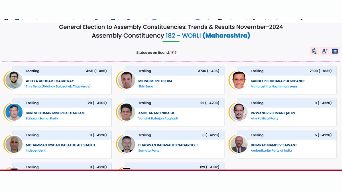 Worli Election Result 2024 Live: Aaditya Thackeray maintains lead in early trends