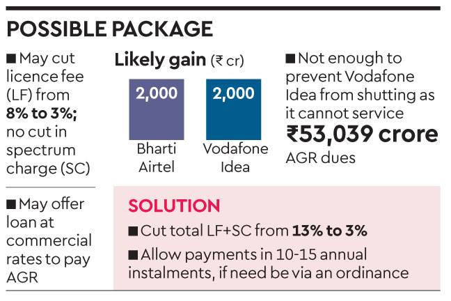 It can also be inferred from the meetings that the government may offer some sops to the operators in terms of cut in licence fee and spectrum usage charge (SUC) in lieu of the AGR payments they make. Some other financial relief measures could also be worked out.