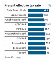 “Private banks’ tax outgo is typically higher. For PSBs, it has been quite inconsistent for the last few years. In that category, SBI stands to gain more than Bank of Baroda (BoB) or Punjab National Bank (PNB),” he said. BoB’s tax rate is 29.8% and for PNB it stands at 30.9%, according to Bloomberg.