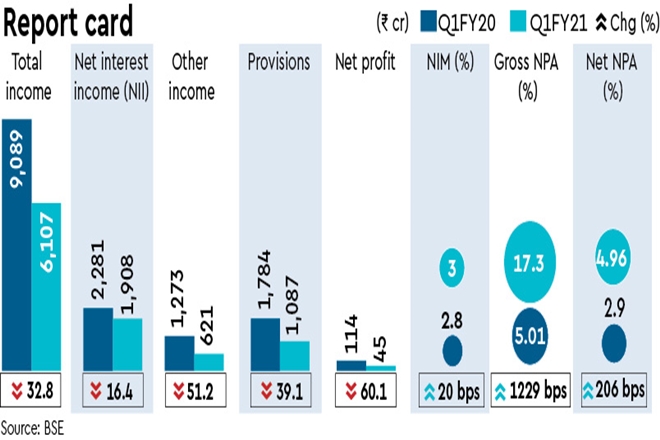 Yes Bank’s provisions fell 39% yo-y to Rs 1,087 crore and its provision coverage ratio (PCR) improved to 75.1% from 73.8% at the end of March. The standard advances provisions include Rs 642 crore worth of Covid provisions made during Q1, taking the cumulative provisions for Covid to Rs 880 crore.