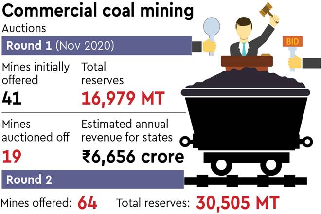 The Union coal ministry is planning to offer 64 new mines, with reserves of 30,505 million tonnes (MT) of the fuel, for the second tranche of the commercial coal auctions. To allay the fears of investors regarding environmental norms, the government has excluded mines falling in wildlife reserves and blocks in areas where there is more than 40% green cover.