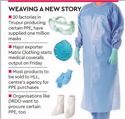These products would be used primarily by paramedics, said Shanmugham. “Only those companies, which have got hostels for workers and are better equipped to adhere to safety measures at this moment, have got permission to produce these items,” Shanmugham said. Some garment units in Karnataka and Noida have also started such production and some others are expected to follow suit.
