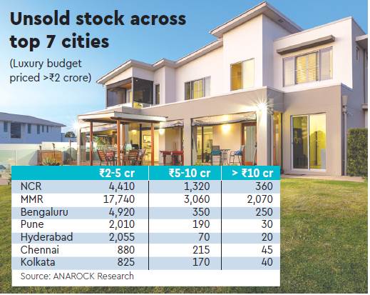 In Mumbai, most of these properties are concentrated in the southern and central parts of the city — Prabhadevi, Parel, Mahalaxmi and Lower Parel. With apartments typically between 4,000 sq ft and 7,000 sq ft large and costing Rs 25,000-Rs 30,000 per sq ft, there are not too many takers. For ready-to-move in-projects, the cost is, understandably, somewhat steeper and in the range of Rs 65,000-Rs 80,000 per sq ft. Though builders have cut down the size of the apartments, there are few buyers.