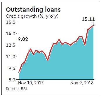 The growth comes off a relative weak base; in 2017 banks were lending cautiously as they were grappling with loan losses and demand from companies was muted. Moreover, in 2016, demonetisation had impacted loan growth. Again, borrowings had shifted to the money markets — bond and commercial paper markets —in 2016 and 2017 since interest rates in those markets was lower.