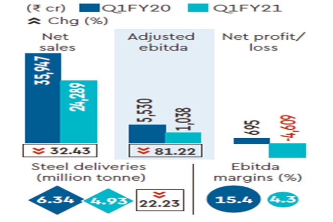 In one of its worst performances, Tata Steel on Thursday reported a consolidated net loss of Rs 4,609 crore for the June quarter, higher than Bloomberg consensus estimates of Rs 2,276.83 crore. The steelmaker,however, generated free cash flows. Also, given the uncertain economic environment, Tata Steel has built up a liquidity buffer of Rs 20,144 crore including Rs 14,178 crore of cash & cash equivalents.