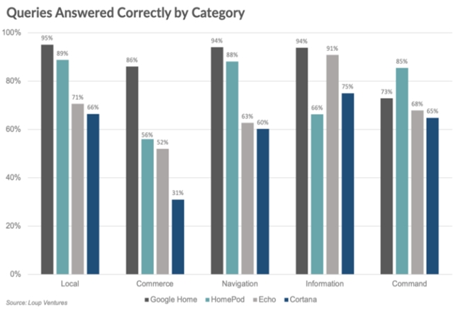 Loup Ventures said that it used the second generation of the Amazon Echo as well as Google Home speakers. The firm gave the same set of queries to all smart speakers and they were ranging from local to commerce to navigation to information and command.