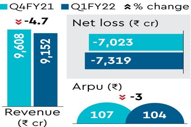 Vodafone Idea’s net loss expanded yet again, coming in at Rs 7,319 crore for the April-June quarter. The net loss is much higher than what analyst expected at Rs 6,387 crore, and wider compared to the preceding March quarter loss of Rs 7,023 crore.