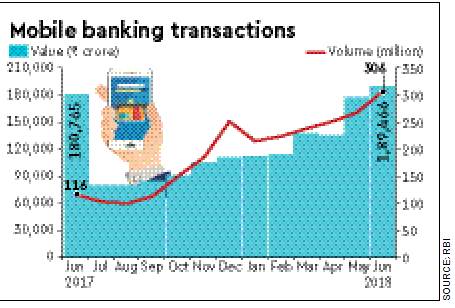 Mobile banking transactions have doubled between October 2017 and June when they crossed the 300-million mark to clock over 306 million transactions.