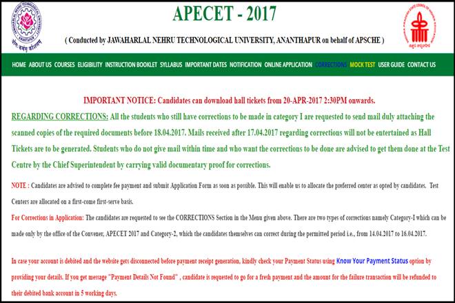 For candidates, the wait is over as the Jawaharlal Nehru Technological University (JNTU), Ananthapur will release the admit card of the Andhra Pradesh Engineering Common Entrance Test (AP ECET) 2017 today itself at 2:30 PM on the official website sche.ap.gov.in. Candidates can download their admit card once the link is activated on the official website. The exam is scheduled to be conducted by the JNT University on May 3, 2017, between 10 AM and 1 PM. AP ECET is conducted by the JNTU on the behalf of the Andhra Pradesh State Council of Higher Education (APSCHE).
