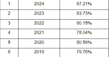 There has been a consistent rise in the overall pass percentage over the past few years. This year marks the highest pass percentage recorded by the board in the last 5 to 6 years: